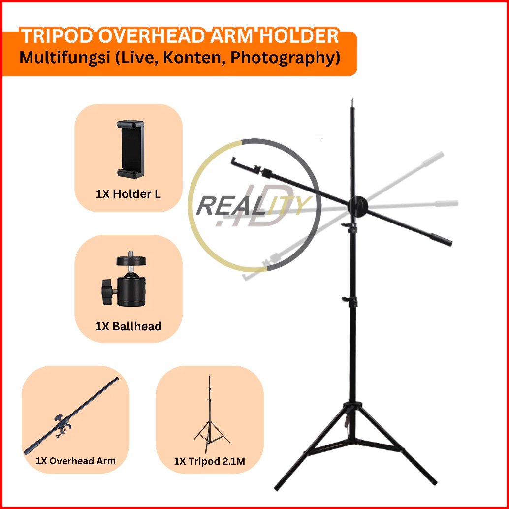 Zmp70 Overhead Tripod Armstand Phone Holder Stick Multifungsi Fotografi Kamera Streaming Konten Kreator Photo Studi