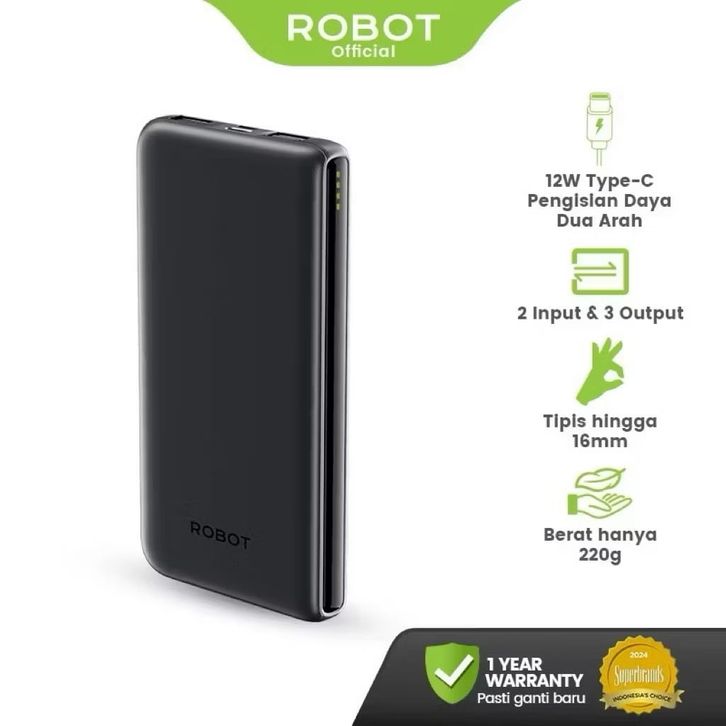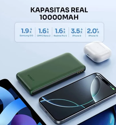 Robot Power Bank Rt180s Powerbank 10000mah Dual Input Type C Micro Led Display Garansi Original