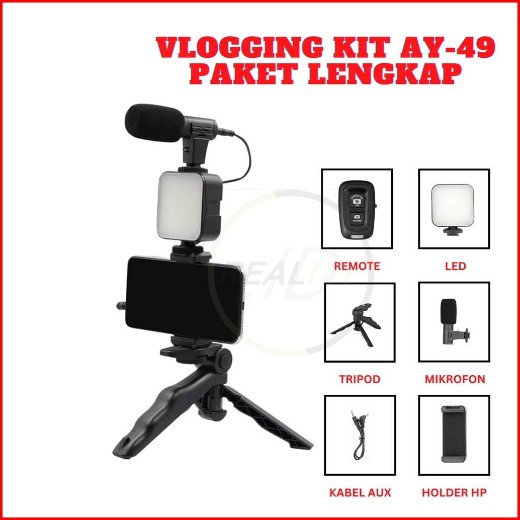 Paket Video Making Kit Ay-49 With Mikrofon Lampu Led Vlogging Kit Tripod Vlog Video Bonus Remote Tomsis Bluetooth Wirele