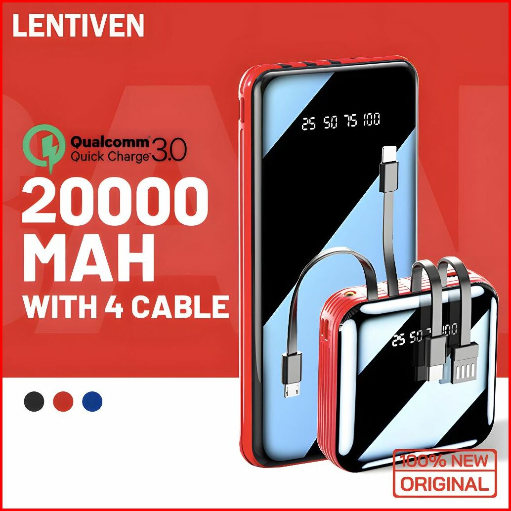Lentiven Powerbank 20000 Mah Mini Full Capacity Portable Digital Display 4usb