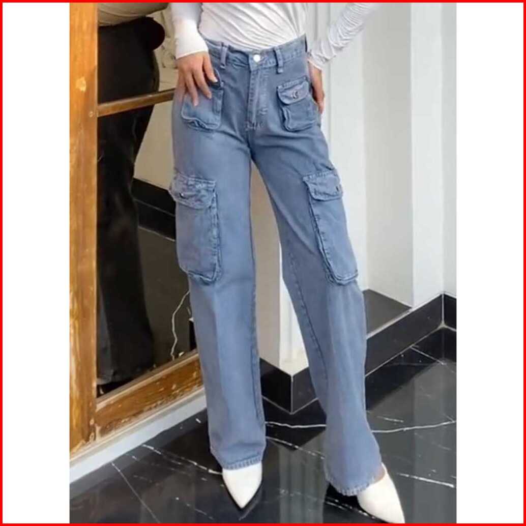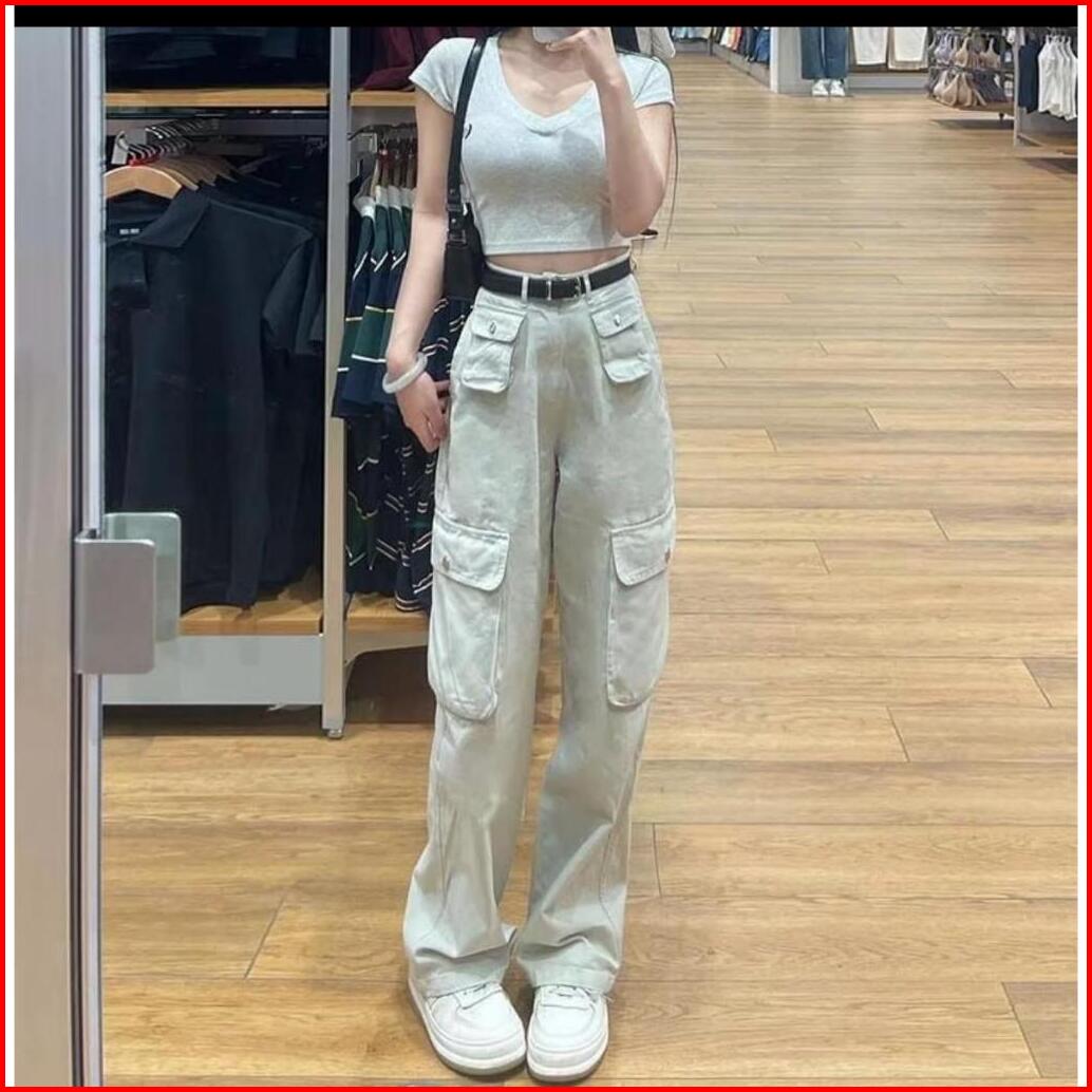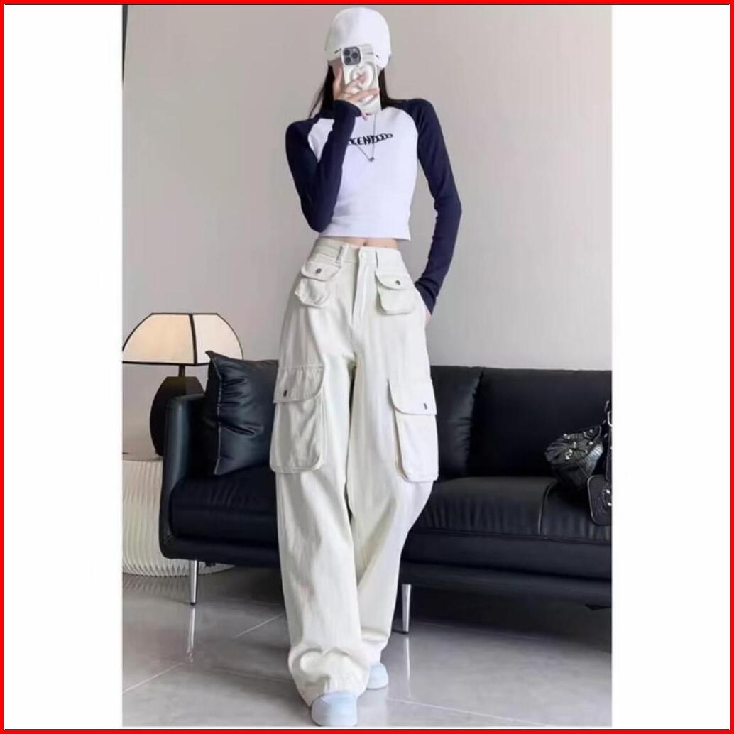 Cargo Jeans Korean Style New Big Size Jumbo 27-42 Pasir Putih 01