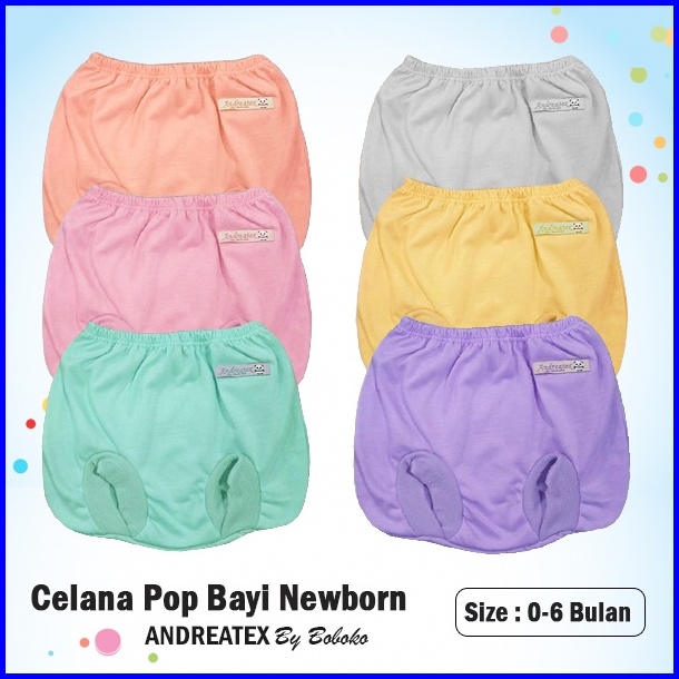 1 Pcs Celana Pop Bayi Andreatex Boboko Polos Warna Pastel 0-6 Bulan