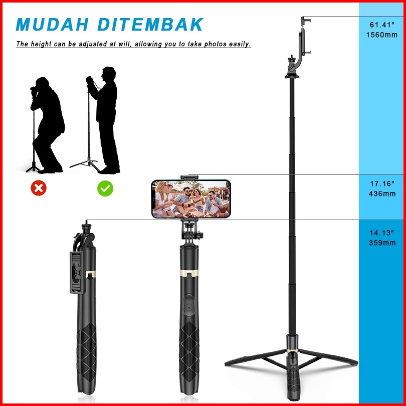 Zevan Tripod Bluetooth Remote Control Q16 156cm Multi-functional Reinforced Dengan 1 4 Adaptor Dapat Dihubungkan Ke Lamp