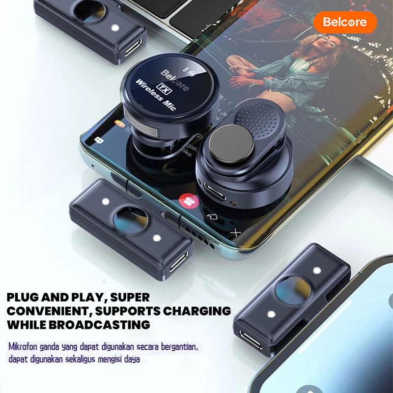 BELCORE D80 MAGNETIC WIRELESS CLIP ON MICROPHONE DUAL LAVALIER HP PLUG & PLAY LAPEL MIC WITH CHARGING CASE MIKROFON FOR TIKTOK YOUTUBE FACEBOOK STREAM VLOG VIDEO RECORDING NOISE REDUCTION AUTO SYNC