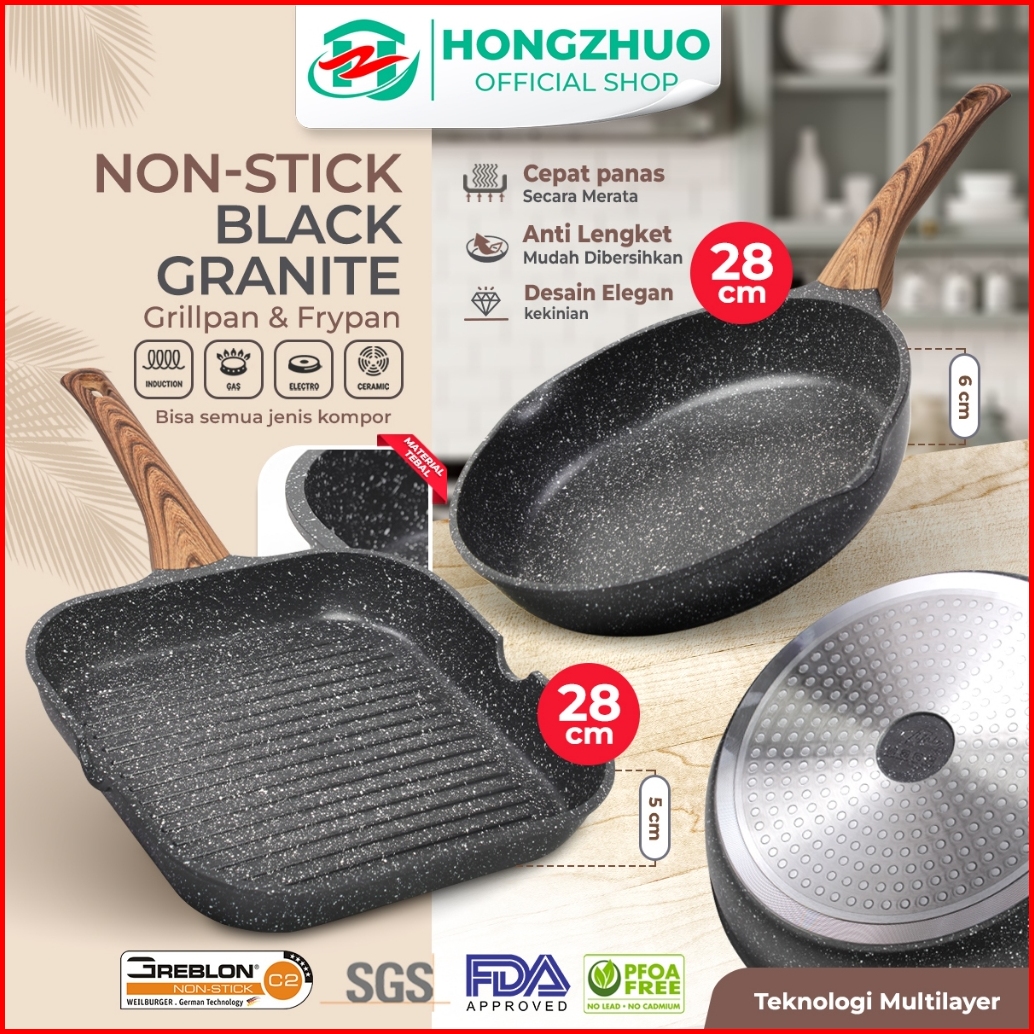 Tifale Frypan Grillpan 28cm Black Granite Granit Hitam Putih Anti Lengket Peralatan Masak Dapur Kitchenware Aluminium Si