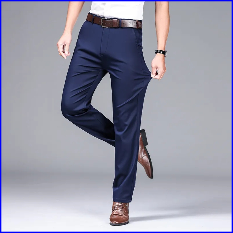 Mallvose - Celana Pria Formal Bahan Premium Navy Slimfit
