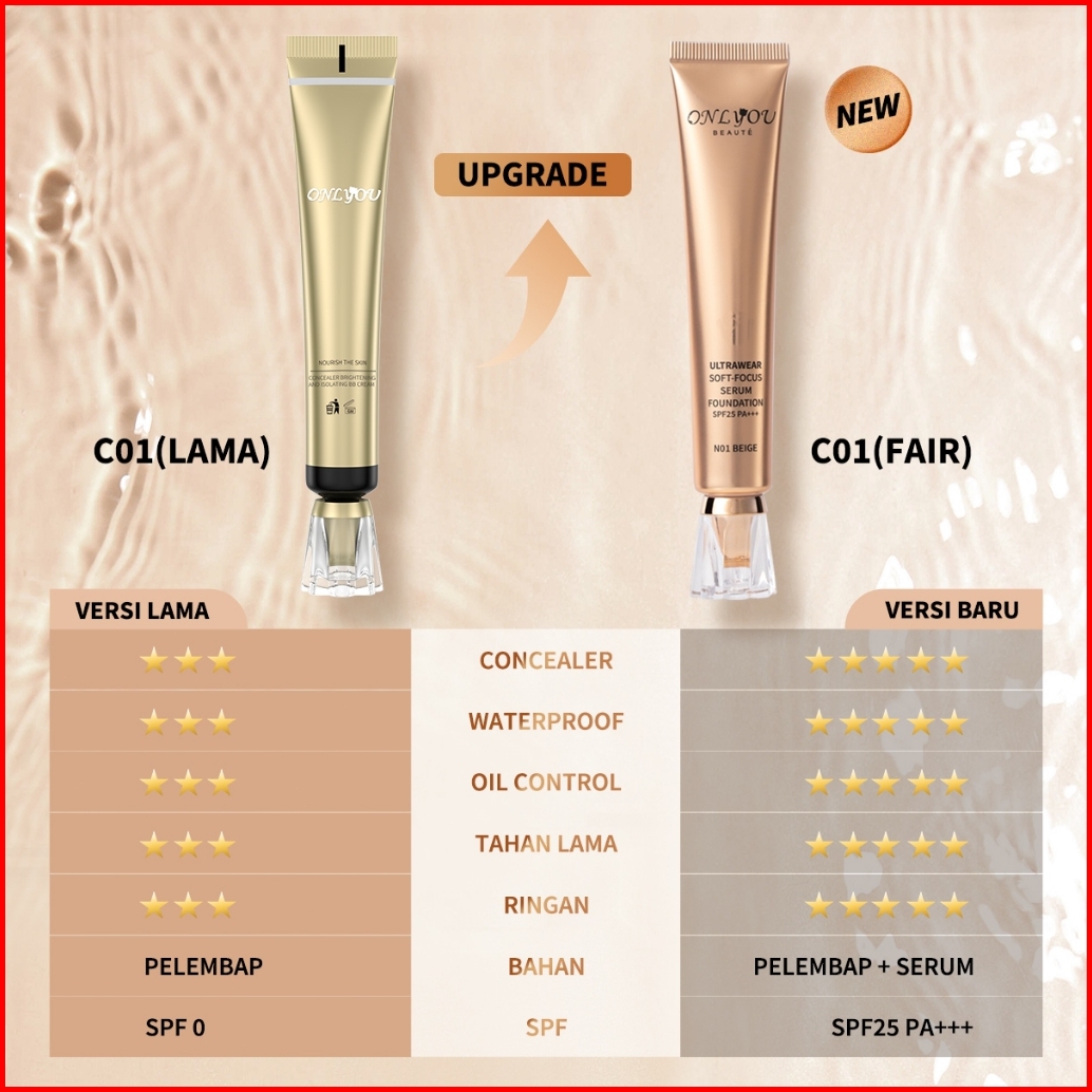 New Upgradeonlyou Serum Foundation Pelembab Spf25 Pa 24 Jam Tahan Lama Concealer Waterproof Foundation Oil Control Bb Cr
