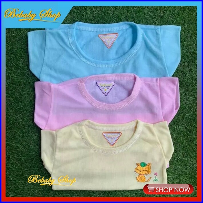 3pc Kaos Baju Oblong Harian Bayi Murah Pink Biru Kuning