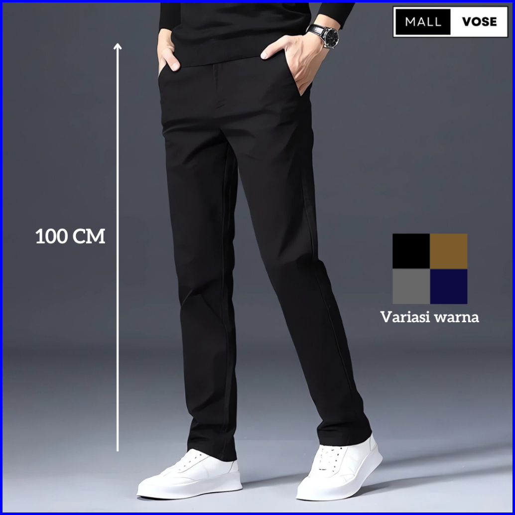 Mallvose - Celana Pria Chino Premium Panjang 100cm Black Slimfit