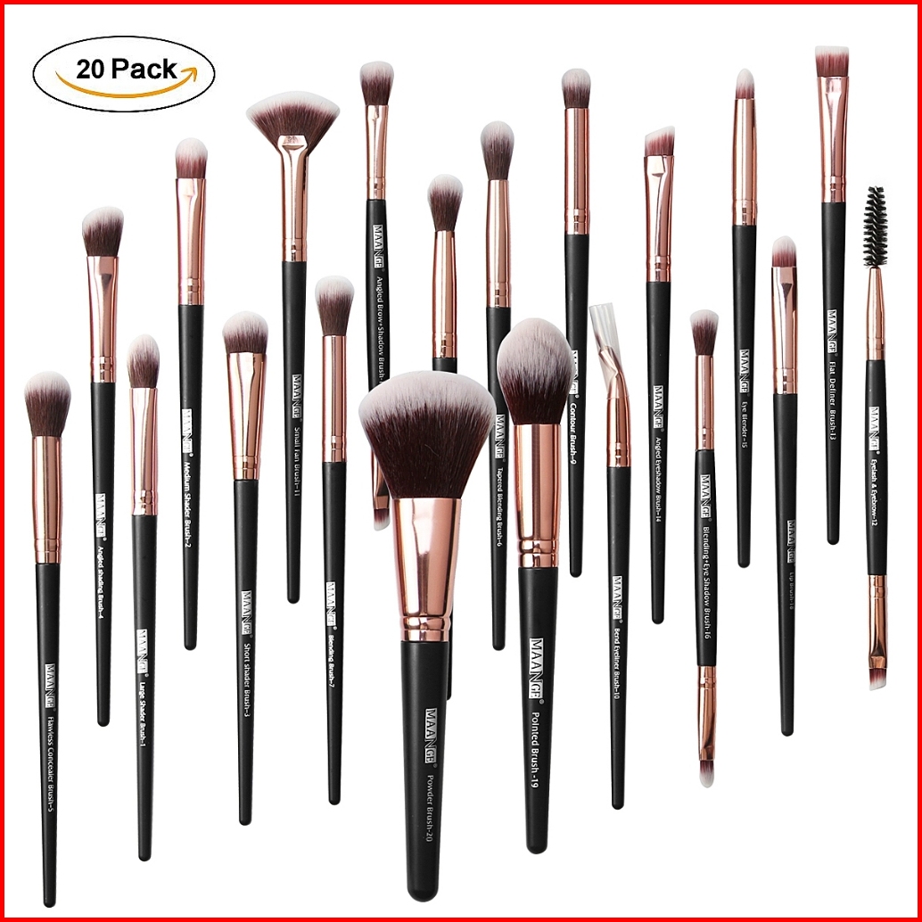 Maange 20 Pcs Exclusive Brush Set Brush Make Up Profesional Alat Rias Wajah Mata Pegangan Kayu 5748