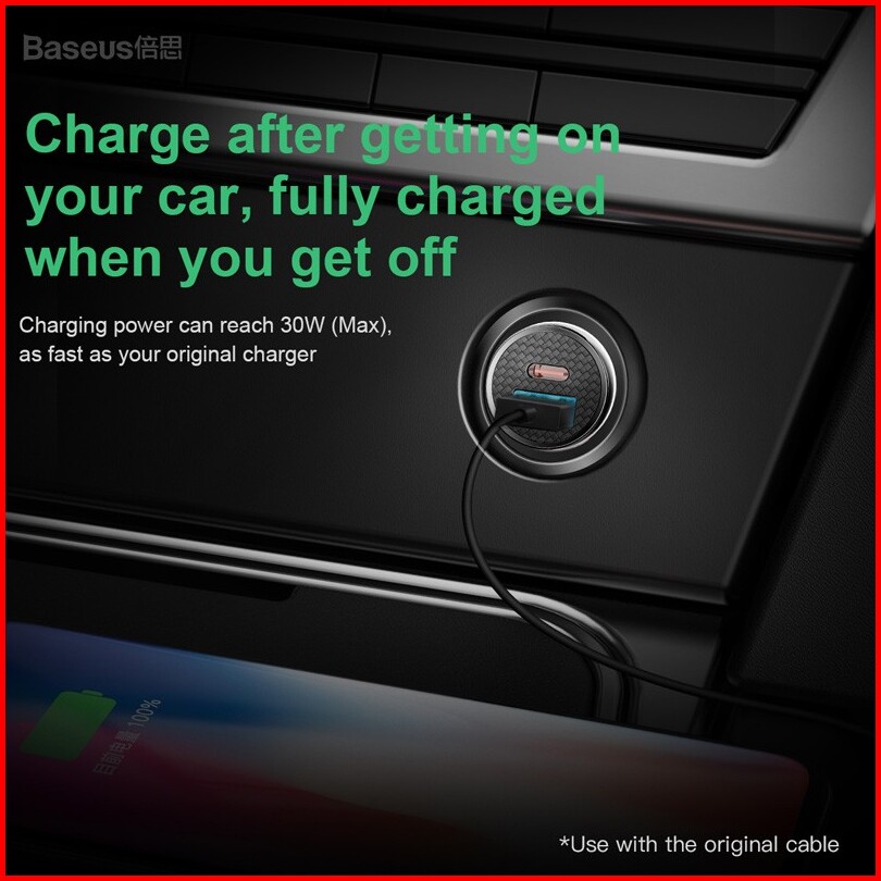 Baseus Car Charger 30w Type-c Pd Usb Quick Charge 3.0