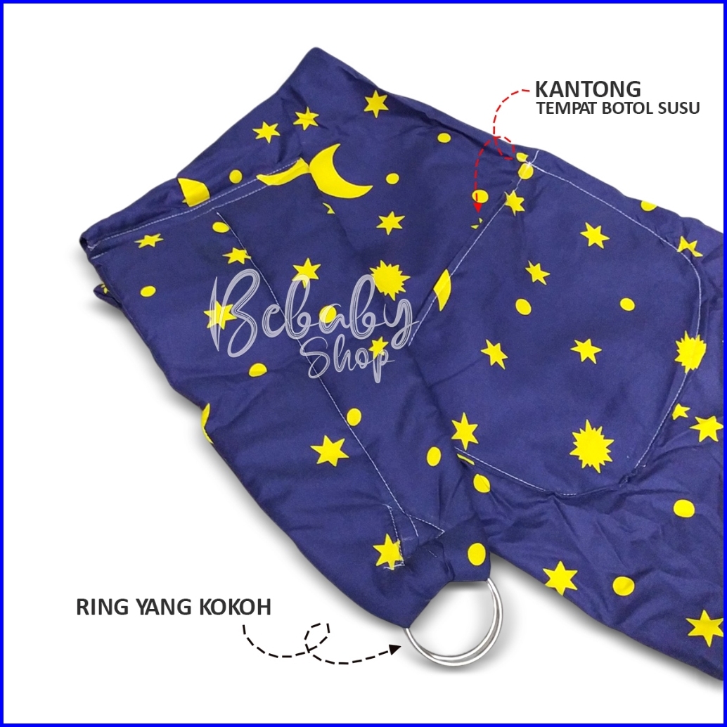 Kain Gendongan Samping Bayi Motif Dengan Ring Sling Dan Saku Untuk Botol Susu Atau Hp