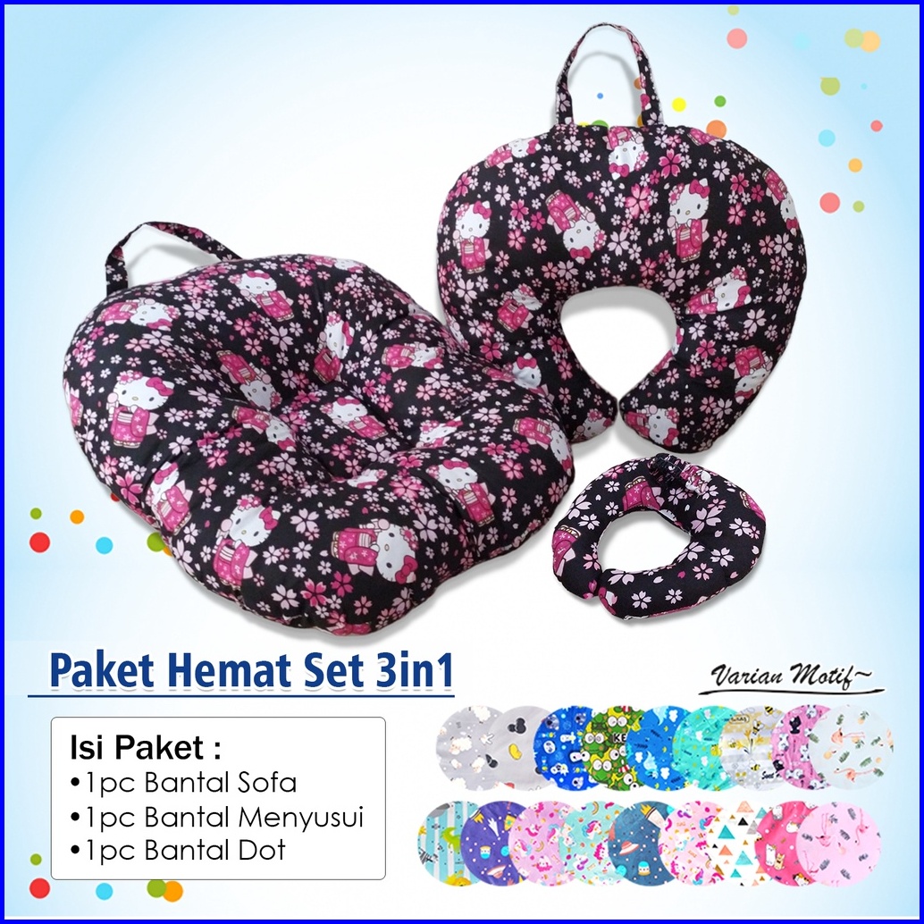 Paket Hemat 3in1 Bantal Sofa Bayi Bantal Dot Bantal Menyusui Motif Karakter Lucu