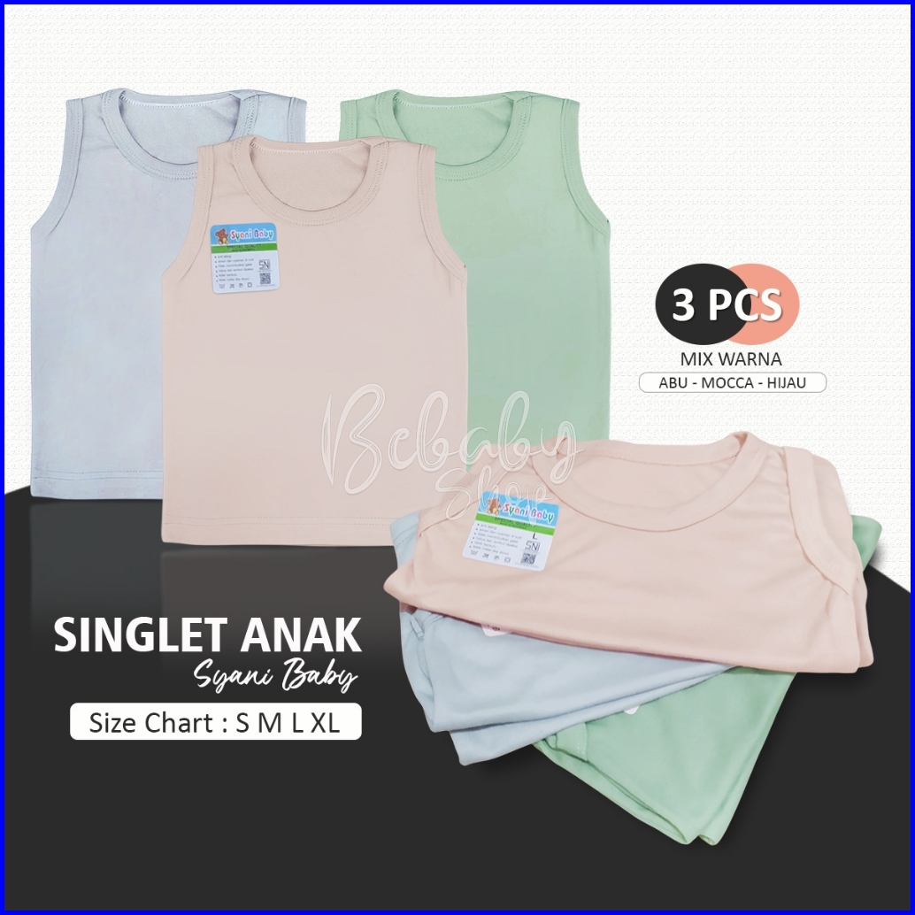 3pc Singlet Anak Bayi Syani Baby Polos Warna Kaos Dalam Anak Bayi Newborn S M L Xl