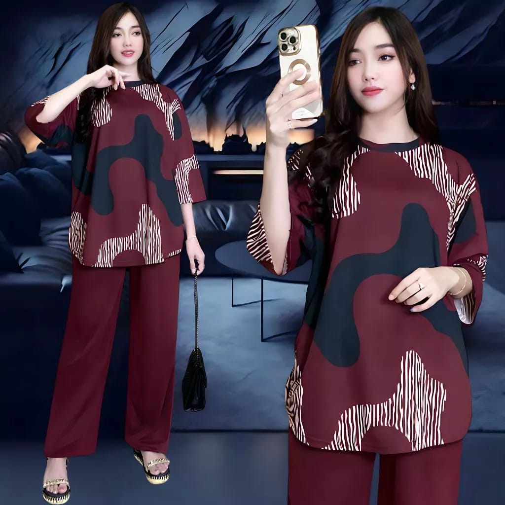 Telsa Setelan Wanita Celana Lurus Dan Atasan Oval Belahan Kiri Dan Kanan Oversize Wanita