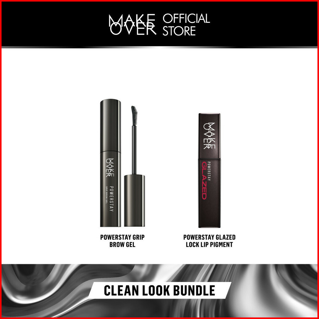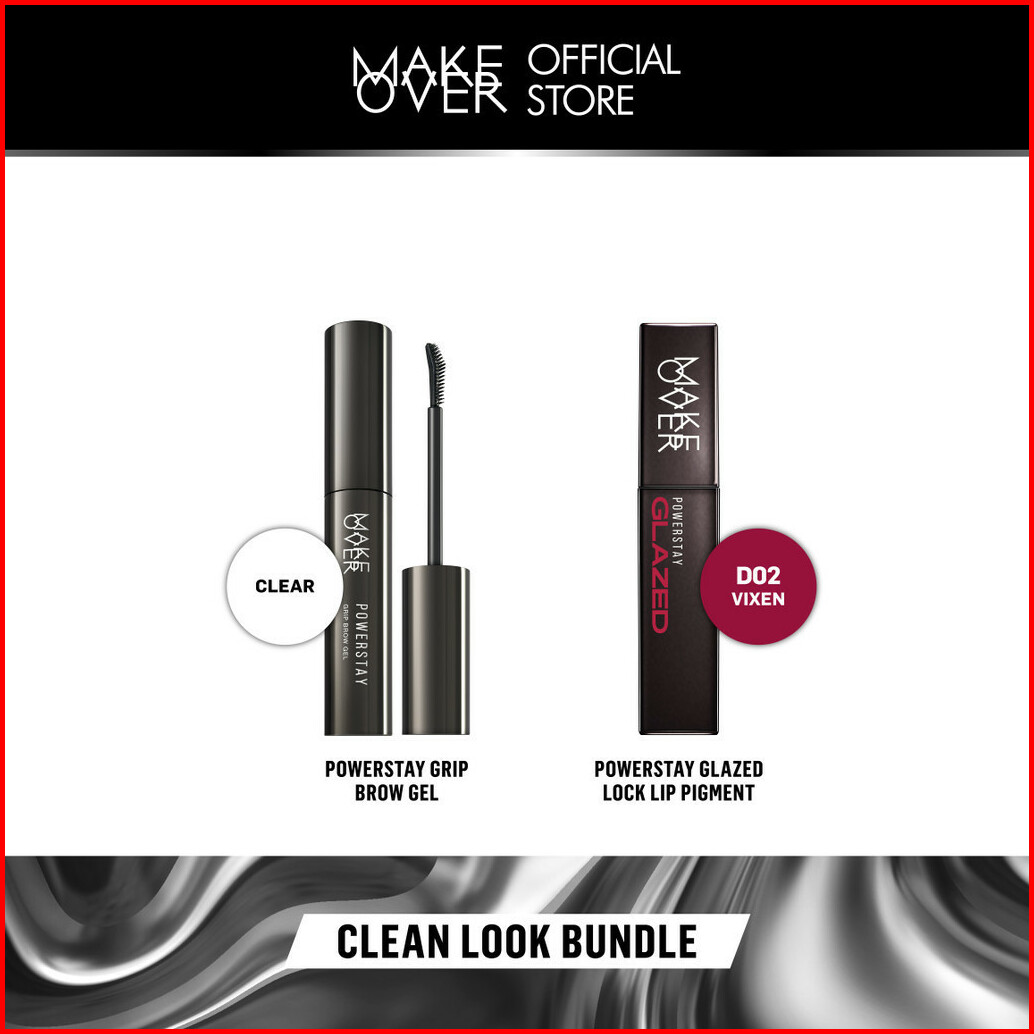 Make Over Clean Look Bundle Powerstay Grip Brow Gel Glazed Lock Lip Pigment