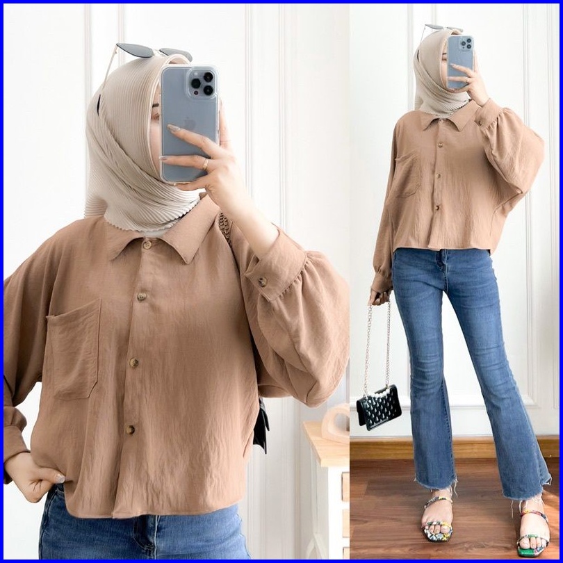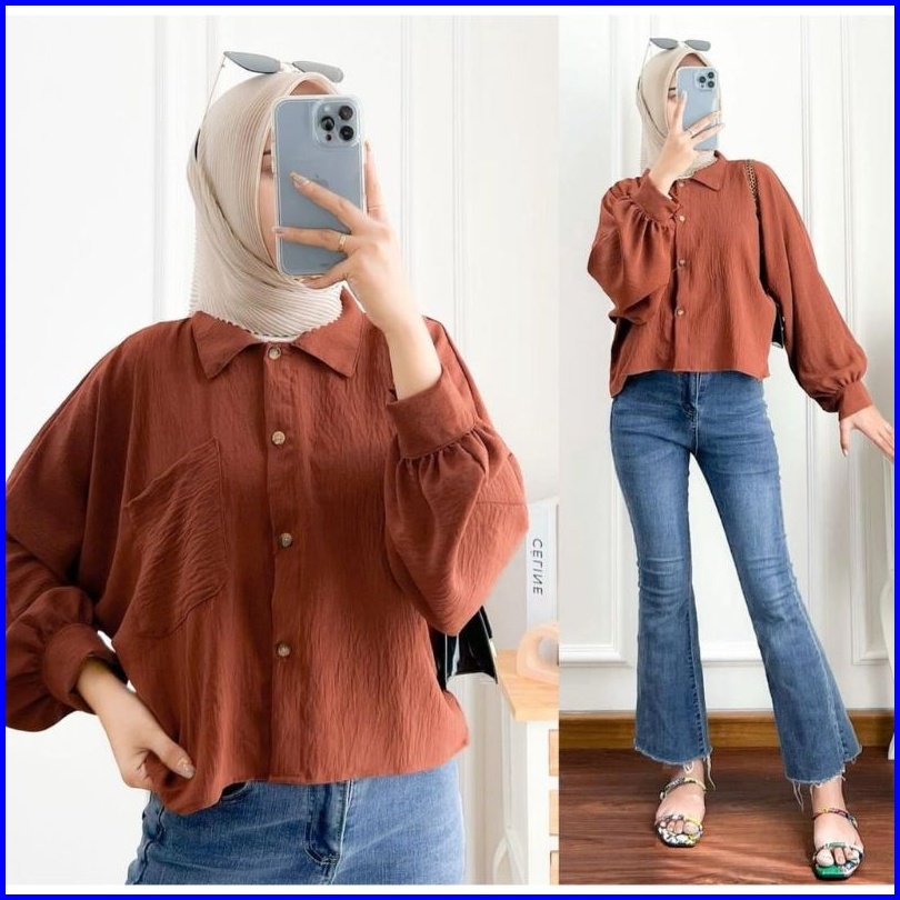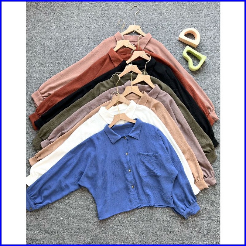 Malvin Blouse Crop Crinkle - Atasan Wanita Crinkle Airflow - Blouse Kemeja Crop Wanita