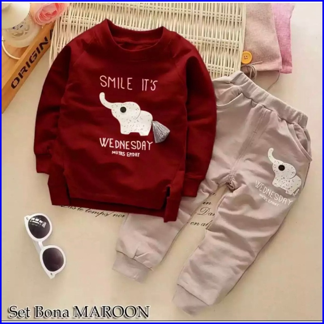 Setelan Anak Motif Gajah Setelan Switer Joger Anak 1-6 Tahun