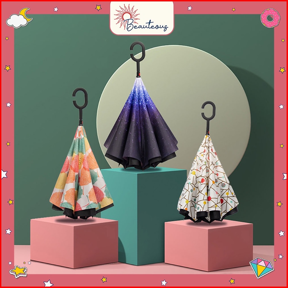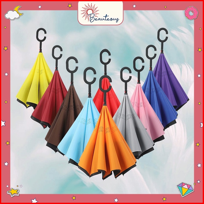 Payung Terbalik Besar Reverse Gagang C Umbrella 2 Layer Kazbrella