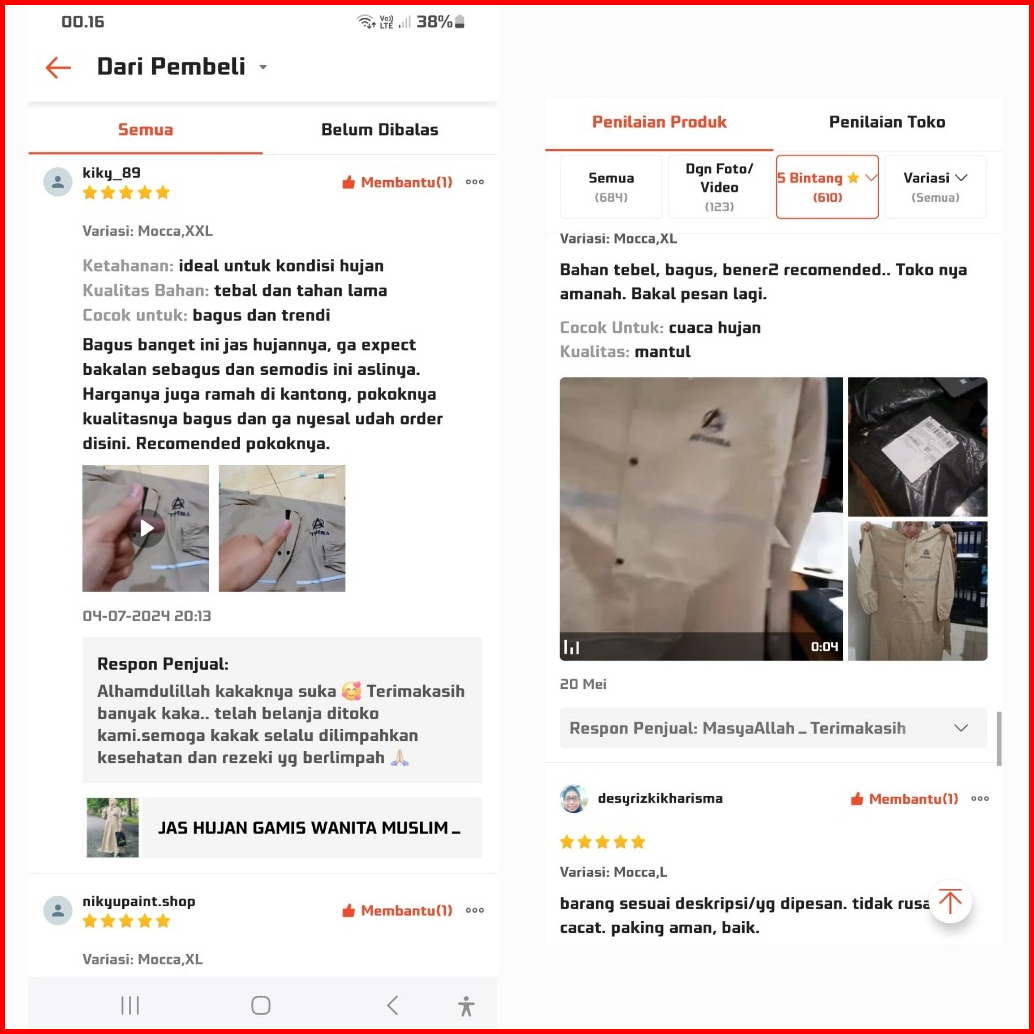 Jas Hujan Gamis Syar I Wanita Muslimah Jumbo Bahan Tebal Kuat Dan Anti Rembes