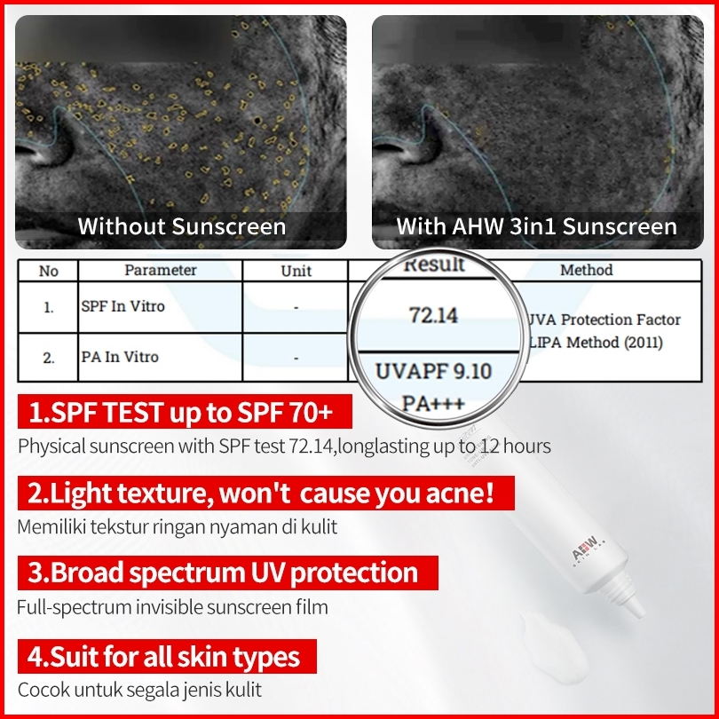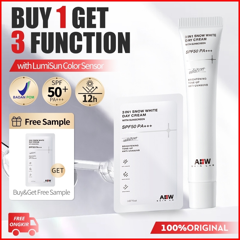 Ahw Skin Lab 3in1 Snow White Day Cream With Sunscreen Spf 50 All Skin Types Sun Protector Mencerahkan Kulit Dan Melindun