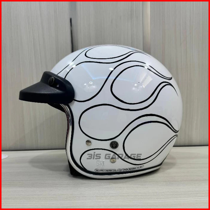 Helm Bogo Custom Retro Vespa Flame List Chrome Murah