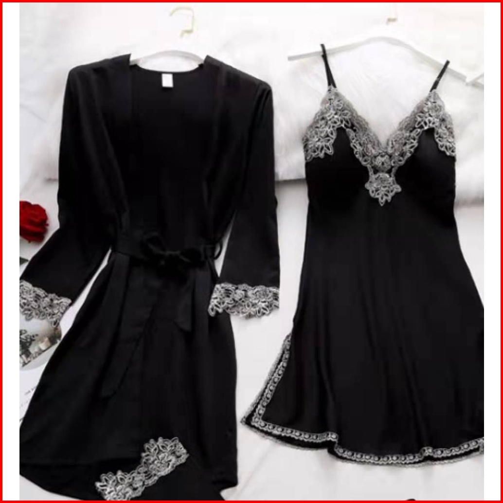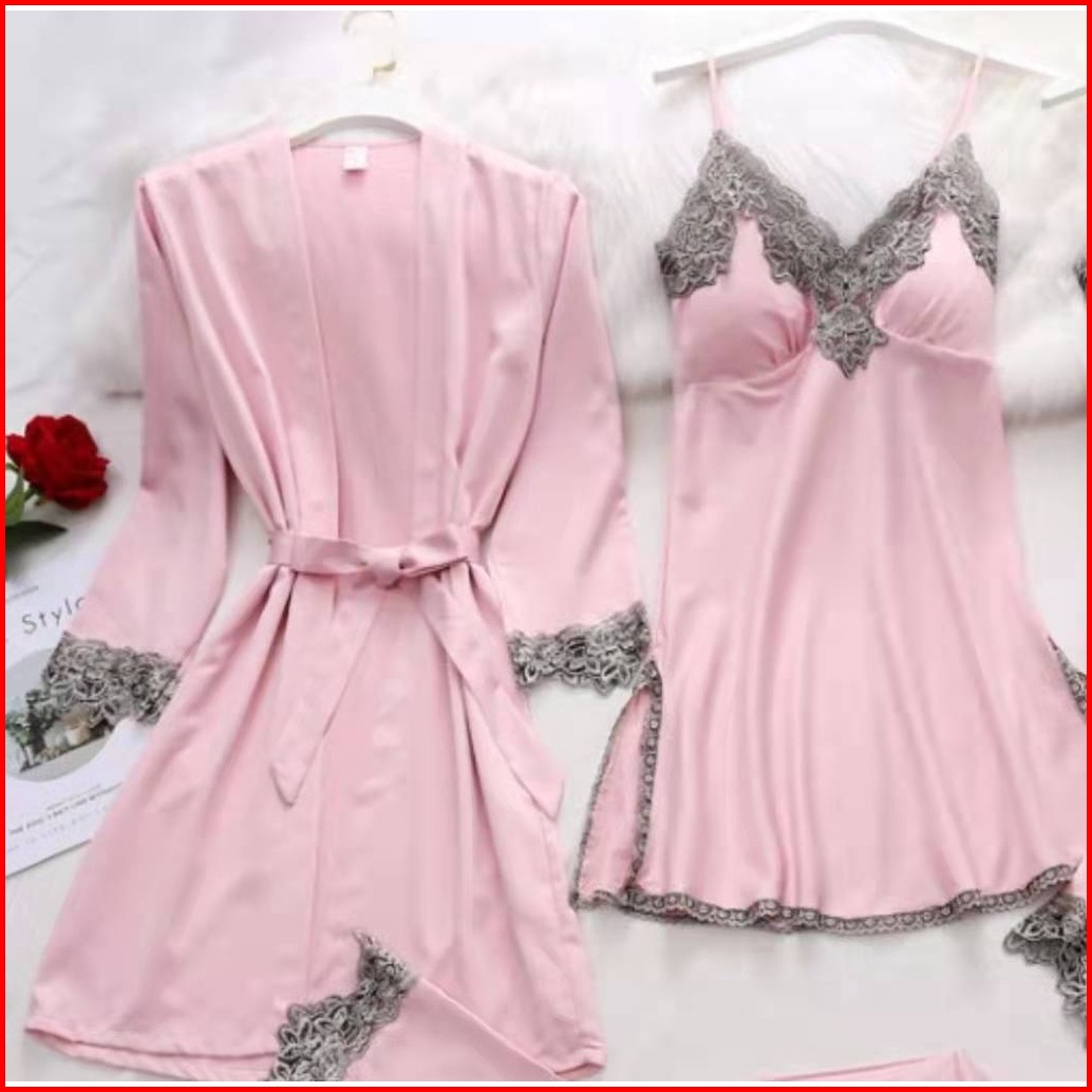 Musim Semi Dan Musim Gugur Piyama Wanita Es Sutra Seksi Lengan Panjang Suspender Baju Tidur Korea Su