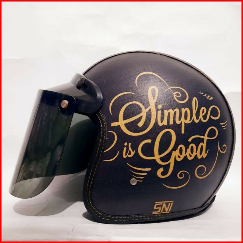 Helm Bogo Full Leher Kulit Dewasa Full Leher Kaca Flat Datar