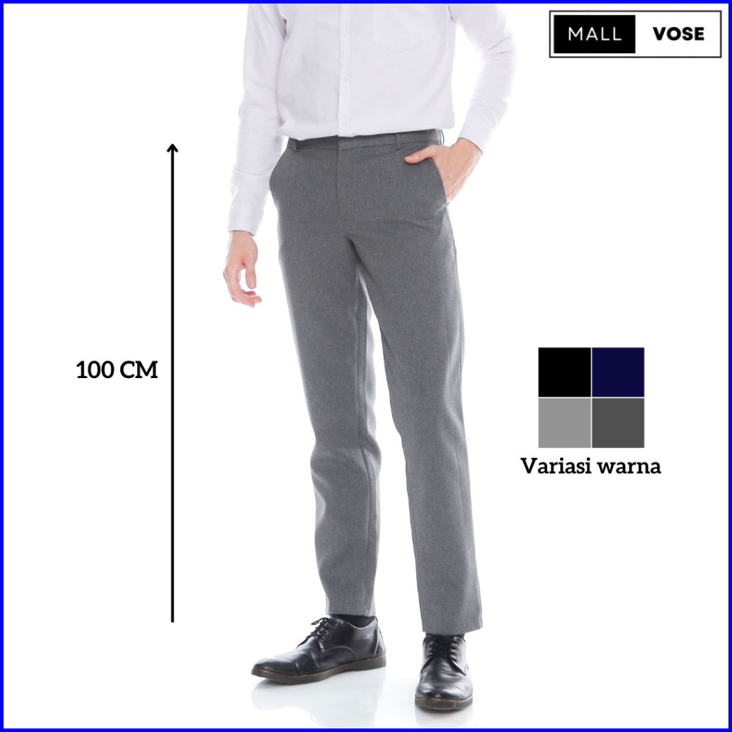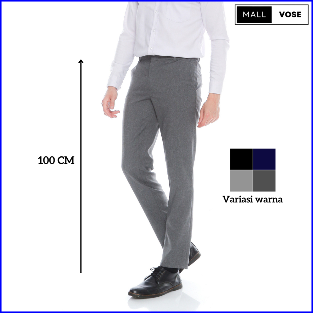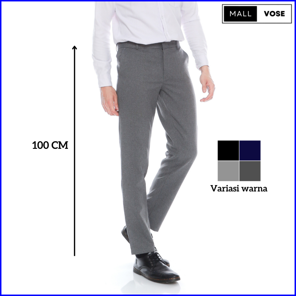 Mallvose - Celana Formal Kerja Abu Muda Bahan Semi Woll Premium Panjang 100cm