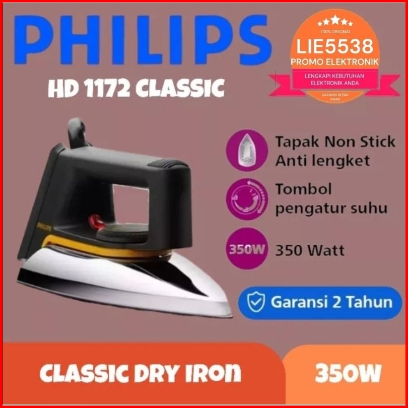Setrika Philips Hd 1172 Hd 1172 350watt Garansi Resmi