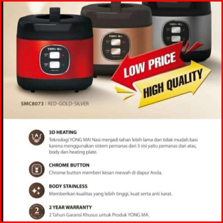 Yong Ma Magic Com Smc-8073 Rice Cooker 3d Heating Body Stainless - 2l