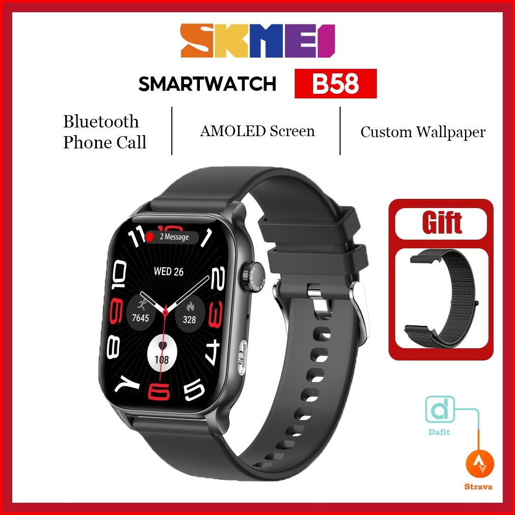 Skmei B58 Smartwatch Wanita Pria Amoled Full Touch Screen Sports Fitness Tracker Jam Tangan Wanita Anti Casual Tipis Jam