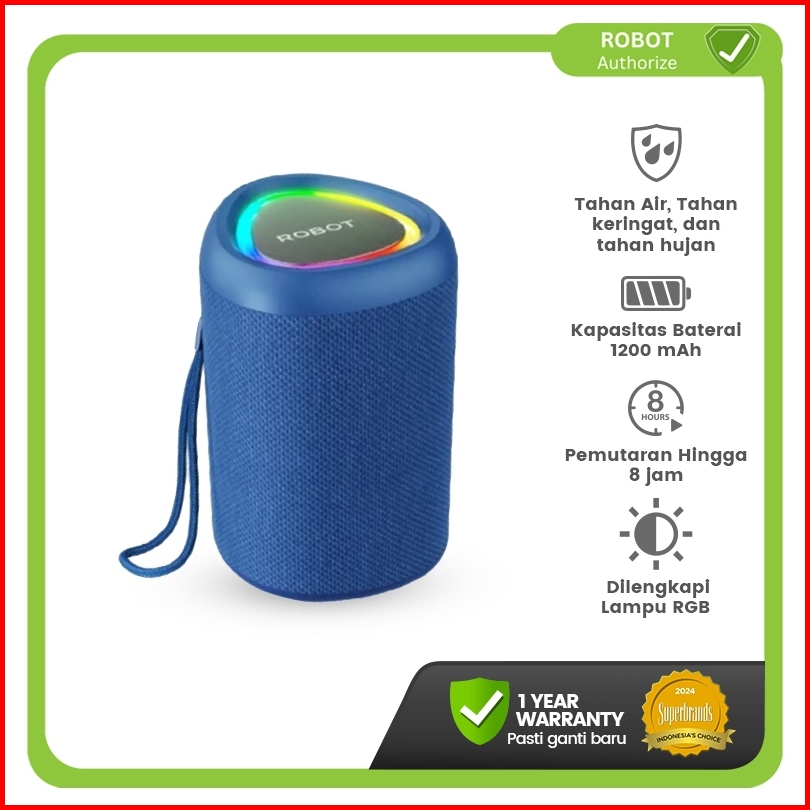 Robot Rb120 Speaker Bluetooth 5.3 Rgb Waterproof Ipx4 1200mah Portable - Garansi 1 Tahun