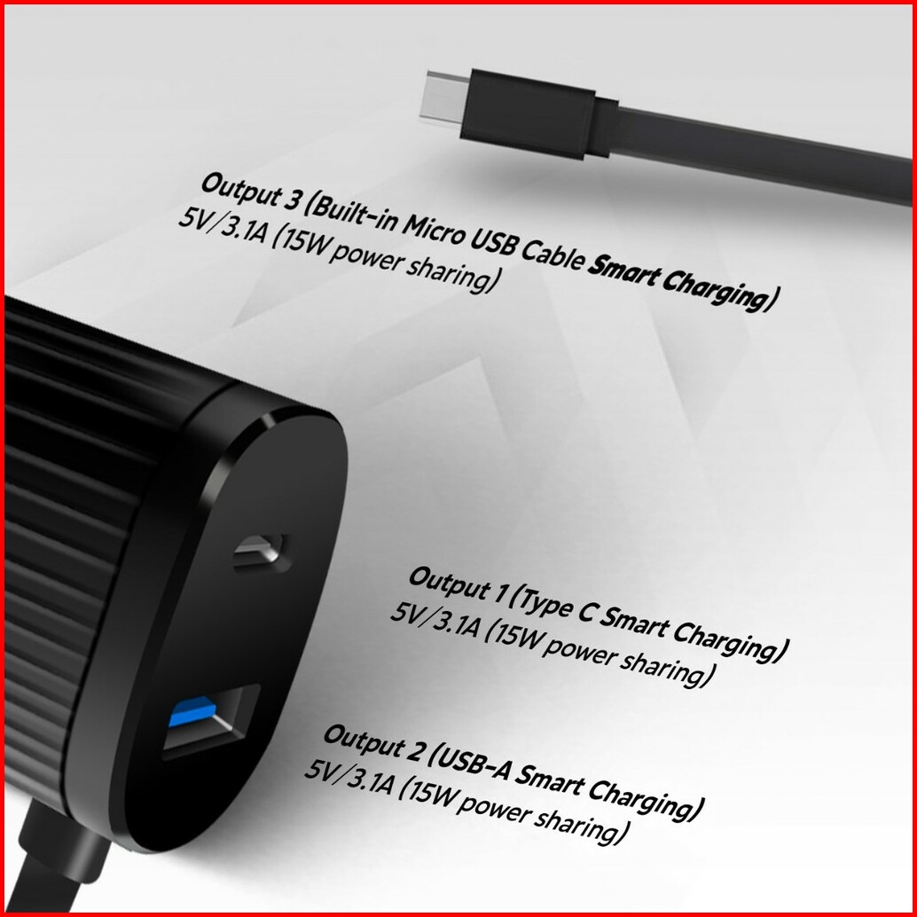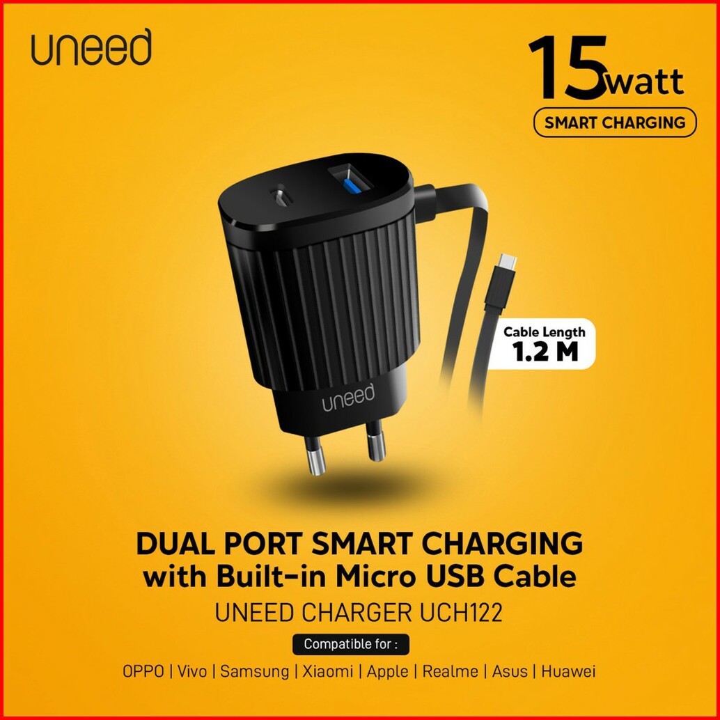 Uneed Smart Charger Triple Output 15w With Micro Usb Cable - Uch122