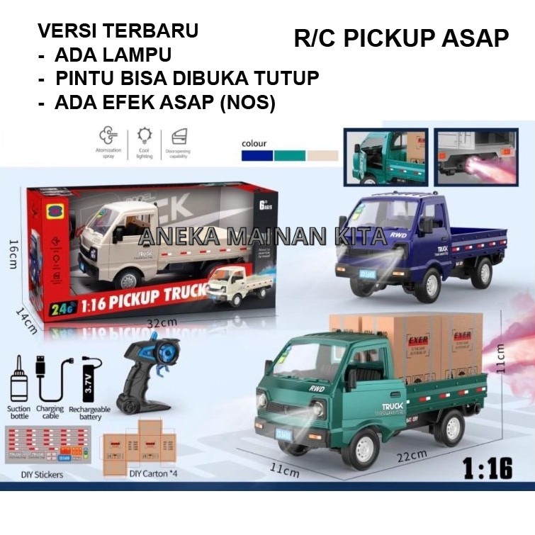 Mainan Mobil Remote Control Mobil Pickup Ada Lampu Dan Asap Pintu Bisa Dibuka Efek NOS Truk Pickup