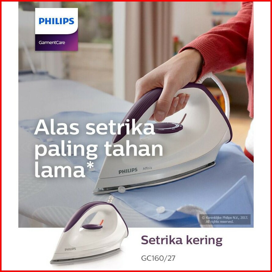 Setrika Philips Strika Gosokan Dry Iron Affinia Gc160 - Putih Ungu Garansi Resmi