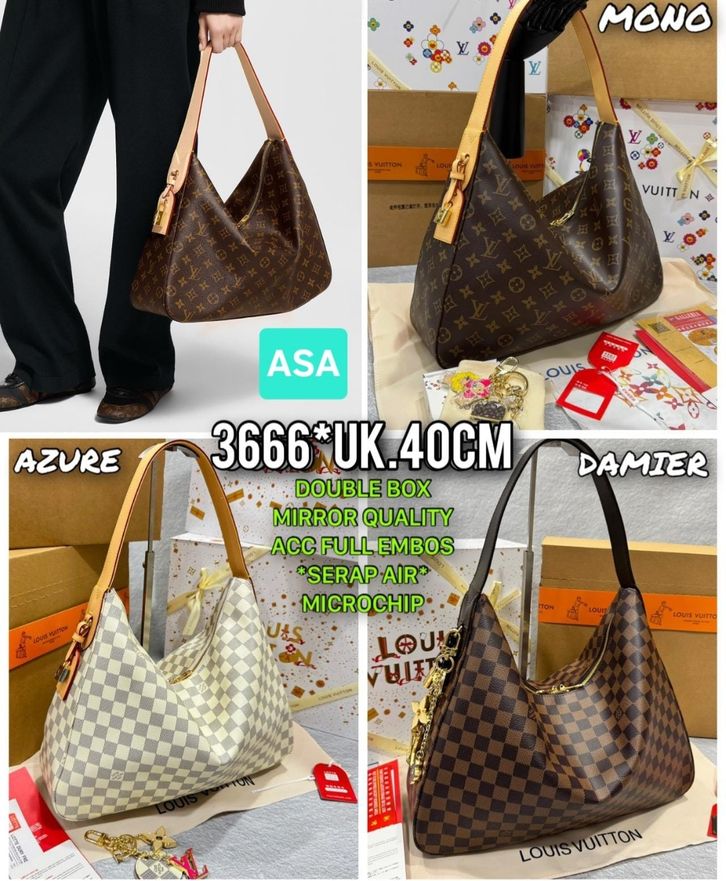 TAS LV SLOUCHY MM KULIT ASLI MIRROR VVIP/TAS WANITA ELPONG HOBO 40CM/SHOULDERBAG TAS BRANDED TERBARU