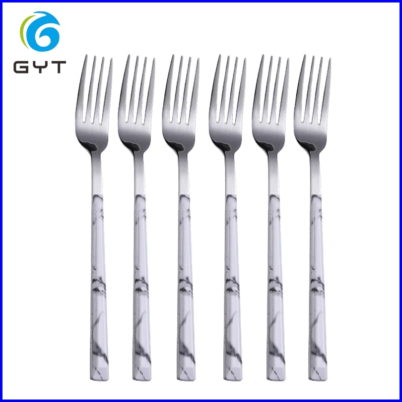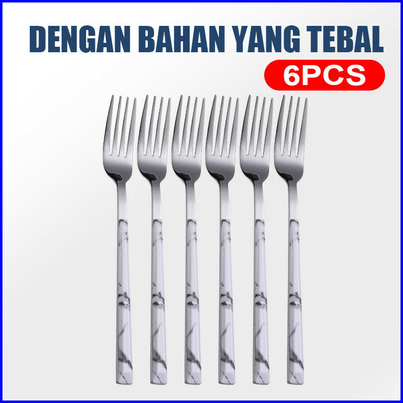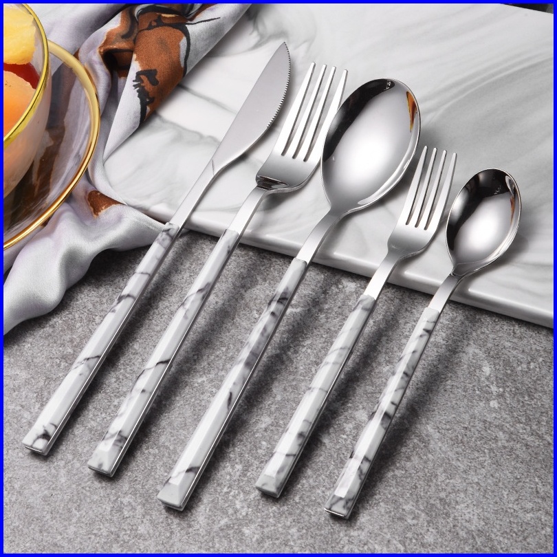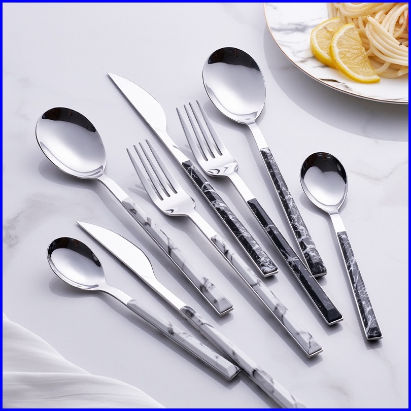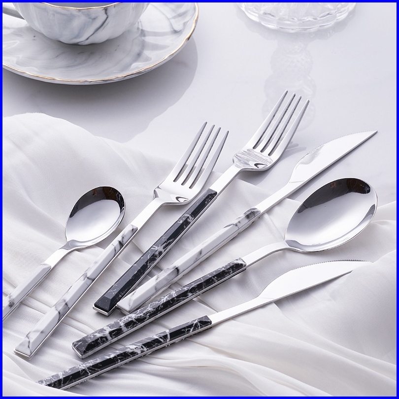 Gyt Garpu Makan Tebal Isi 6pcs Peralatan Makan Stainless Steel Marmer Imitasi Pisau Garpu Sendok Sup Sendok Steak Pisau