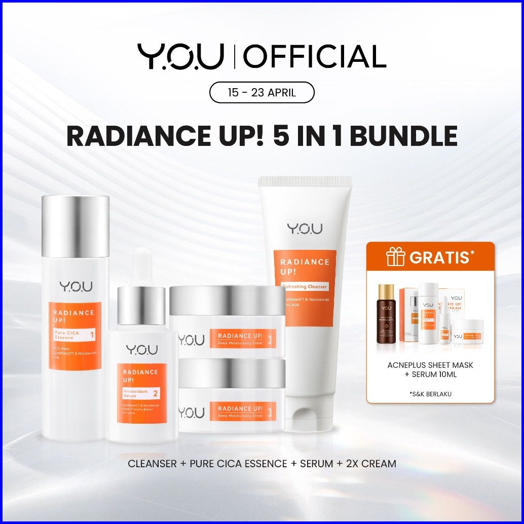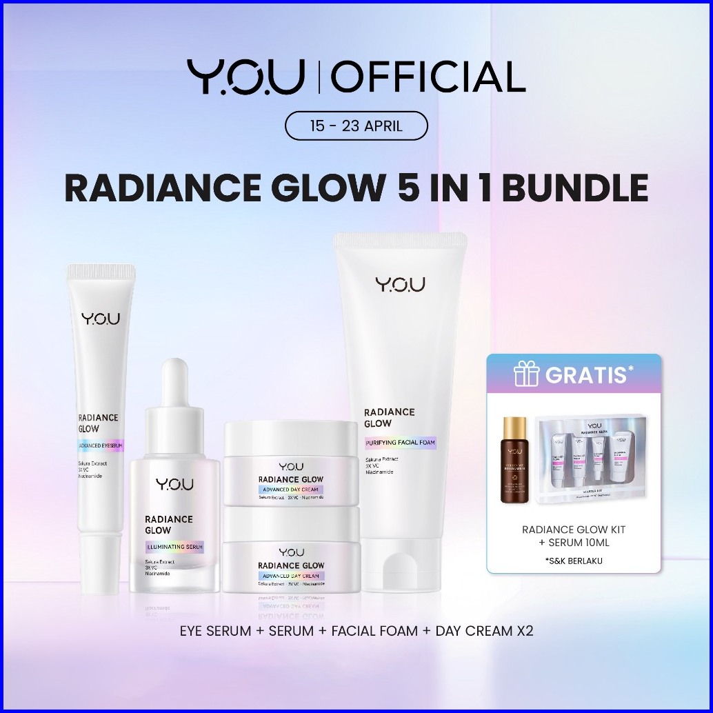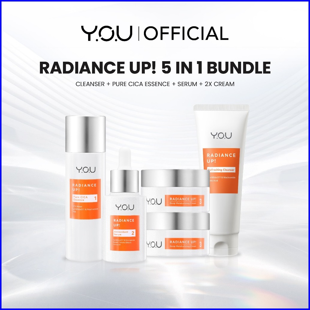 You 5in1 Paket Skincare Set 5pcs Radiance Glow Serum Facial Foam Cream Radiance Up Serum Toner Essence Moisturizer Golde
