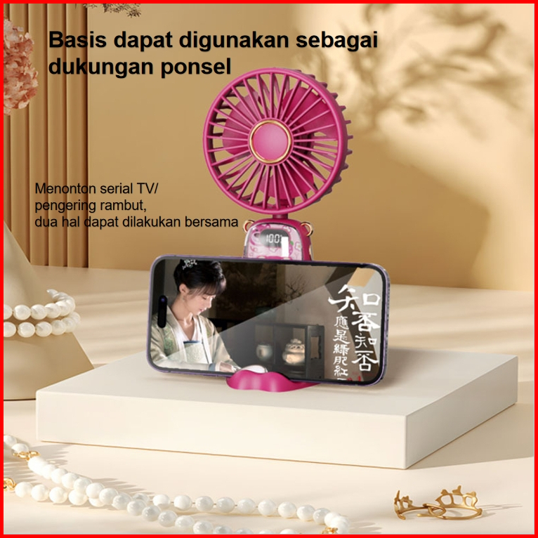 Disney Kipas Angin Mini Portabel Usb 25000 Mah Kipas Lipat Leher 5-speed Wind Led Display Kipas Angin Mini Genggam Kipas