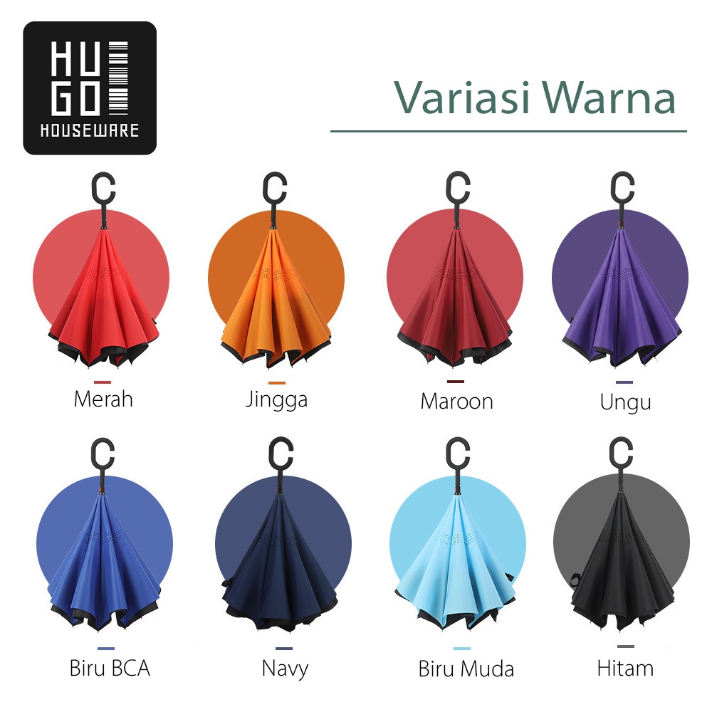 Payung Terbalik Reverse Umbrella Payung Mobil Besar Gagang C HUGO