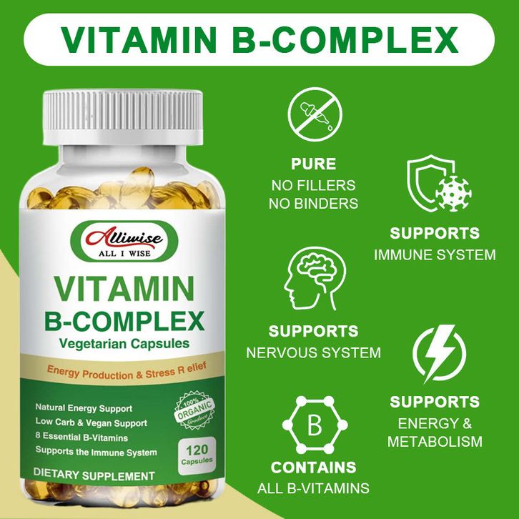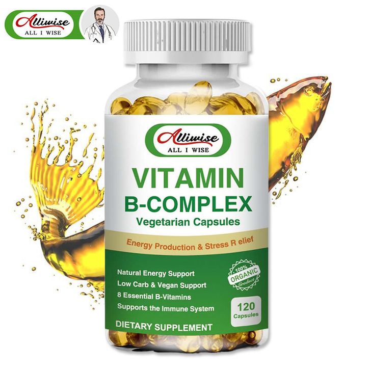 Alliwise Vitamin B Complex Capsules B1, B2, B3, B5, B6, B7, B9, B12 Vegan Capsules for Heart Health ,Nervous System Supp