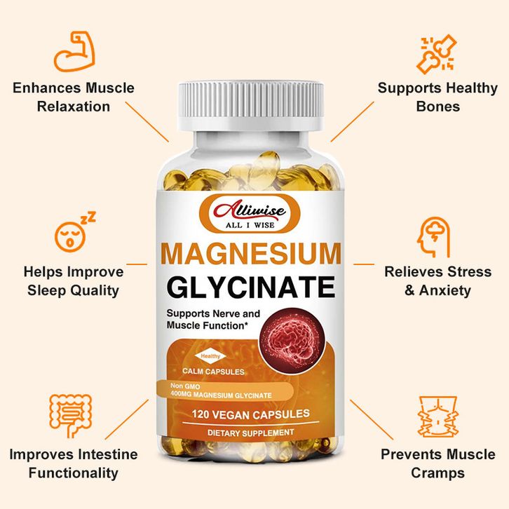 Alliwise Magnesium Glycinate Capsules 400mg Natural Sleep Support Bone Health Immunity Mood Support Heart Health and Mus