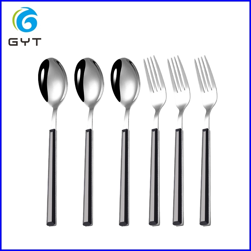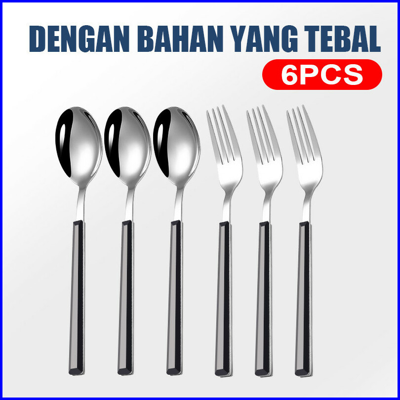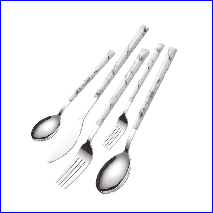 Gyt Garpu Makan Tebal Isi 6pcs Peralatan Makan Stainless Steel Marmer Imitasi Pisau Garpu Sendok Sup Sendok Steak Pisau