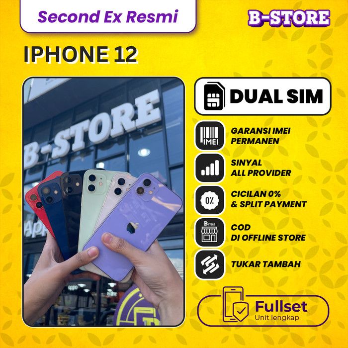 iPhone 12 128Gb Dual Nano SIM - Second Ex Resmi - Apple - Fullset