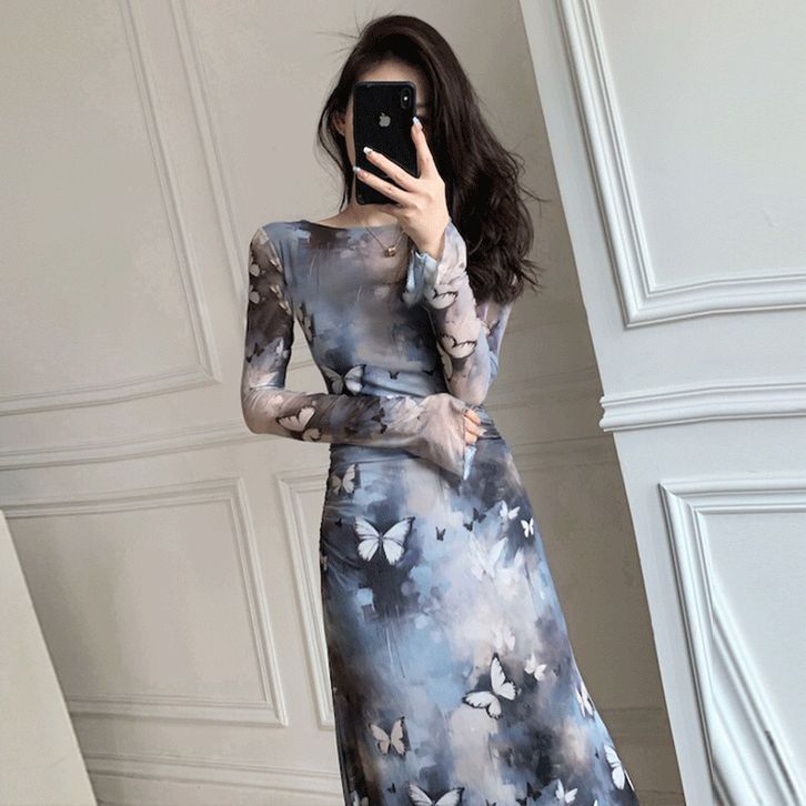 Gaun Dress Mesh Pinggang Ramping Motif Kupu kupu gaun kupu kupu gaun bunga - G047 First Girl - (9194)