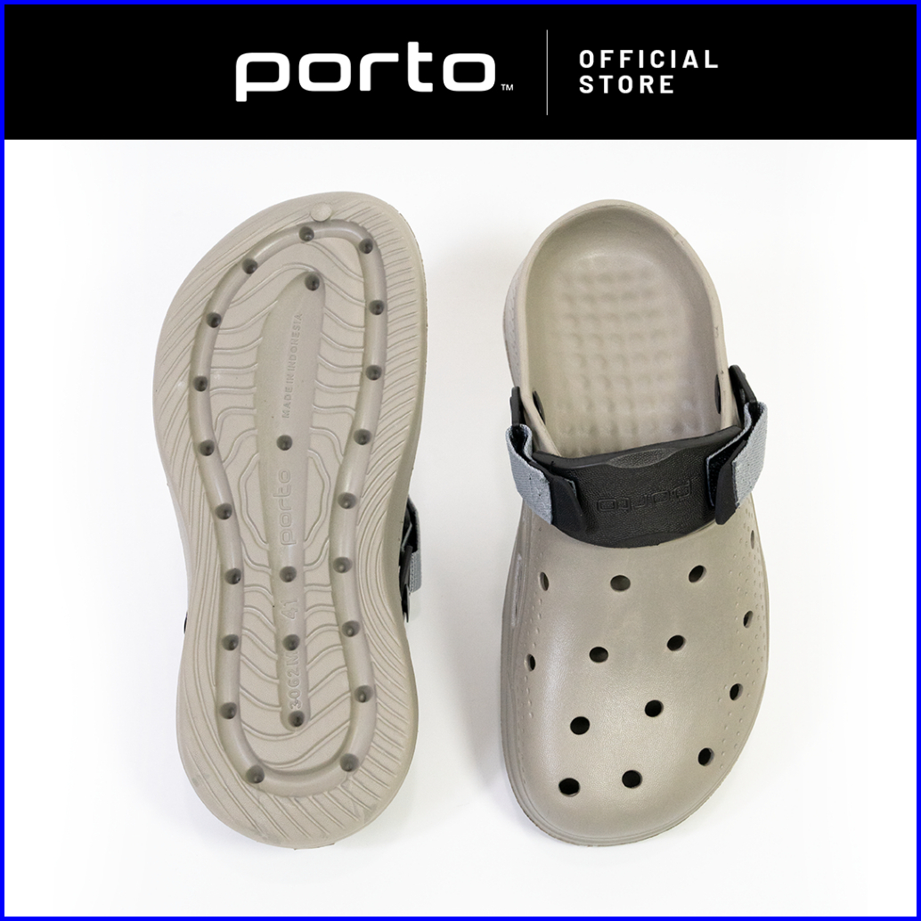 Porto 3062m - Sandal Pria Model Baim Clog Sandal Pria Kekinian Black Driftwoodgrey Asphaltgrey