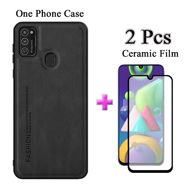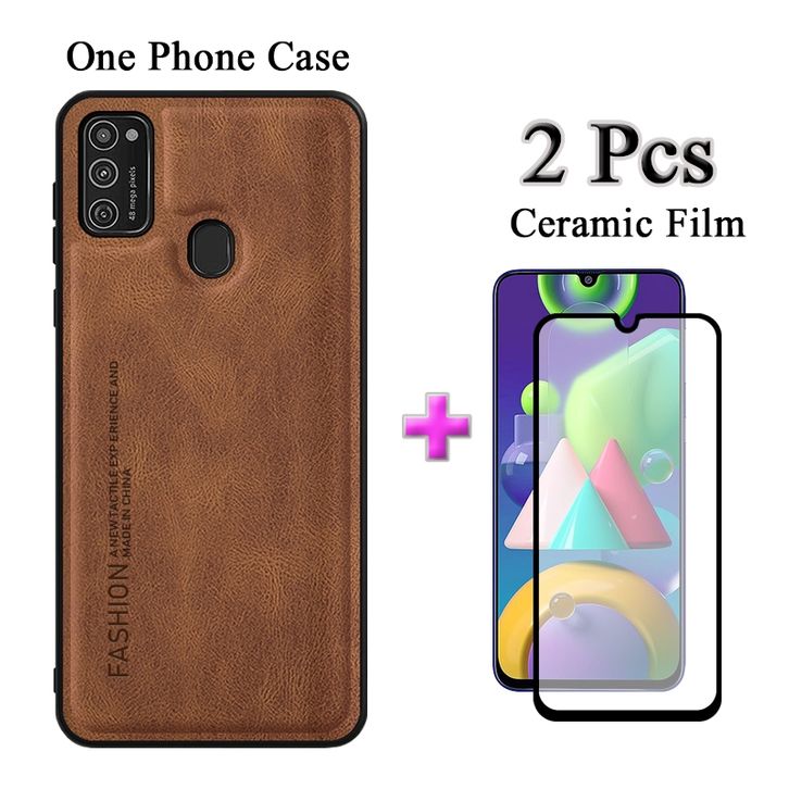 (TERLARIS)2 Dalam 1 Casing Samsung Galaxy M21 Kotak Kulit Minimalis Dengan Film Keramik Layar Protektif