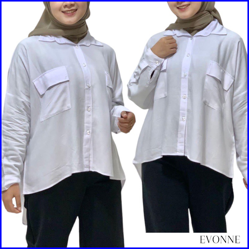 Evonne Atasan Baju Wanita Kemeja Twilly Shirt Basic Oversize Pattern Ld120 E110