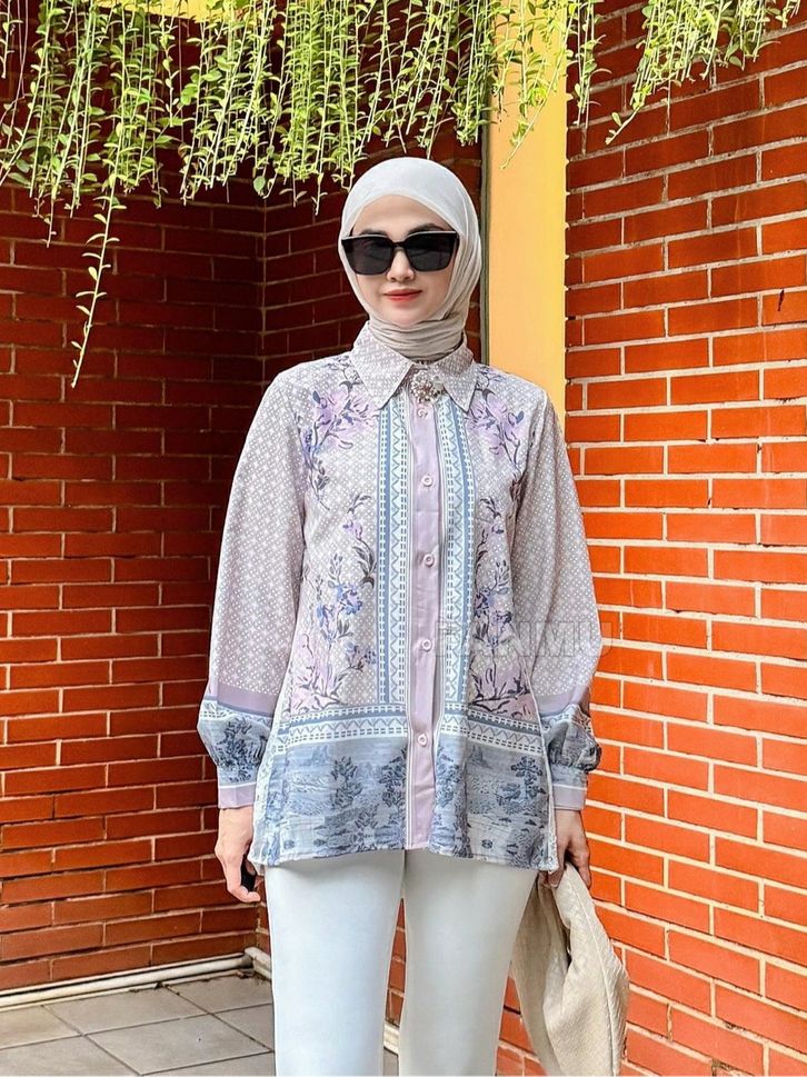 (TERLARIS)FANMU blouse satin silk premium wanita/kemeja brukat lengan panjang wanita